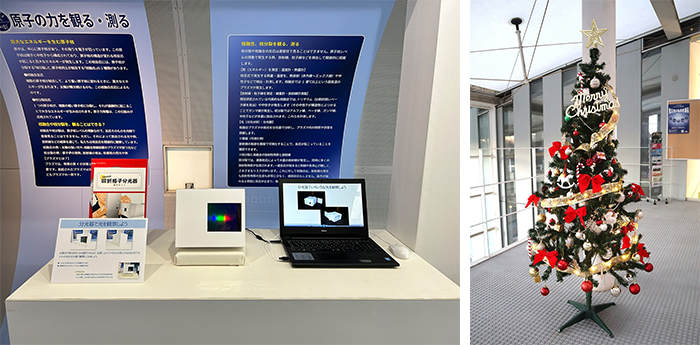 また、受付前には赤とゴールドを基調とした華やかなクリスマスツリーを飾っています。美しいスペクトルの観察と、クリスマスツリーのあたたかな輝きを楽しみに、ぜひCSTミュージアムへご来館ください。