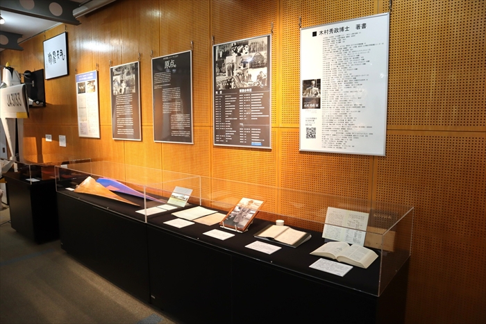 展示コーナー2に展示している木村秀政の資料を展示替えしました。 木村秀政は、戦後初の国産旅客機YS-11の基本構想に参画した航空機開発の専門家です。日本大学理工学部航空宇宙工学科の礎を築いた木村秀政に関する資料から、木村秀政監修の書籍『航空学辞典』、『N-58CYGNETによる日本一周飛行計画書』などを展示しています。 ぜひご覧ください。
